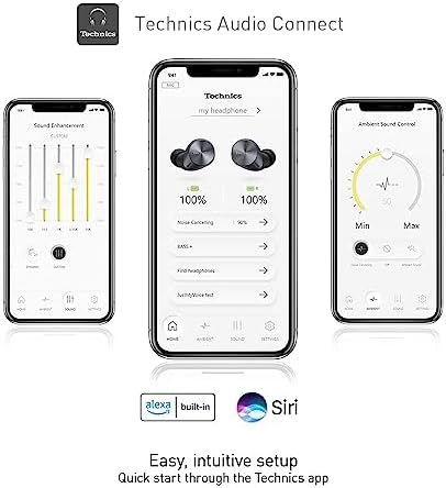 Technics HiFi True Wireless Multipoint Bluetooth Earbuds with Advanced Noise Cancelling, Impressive Call Quality Using JustMyVoice Technology, Alexa Built in, EAH-AZ60-K (Black)